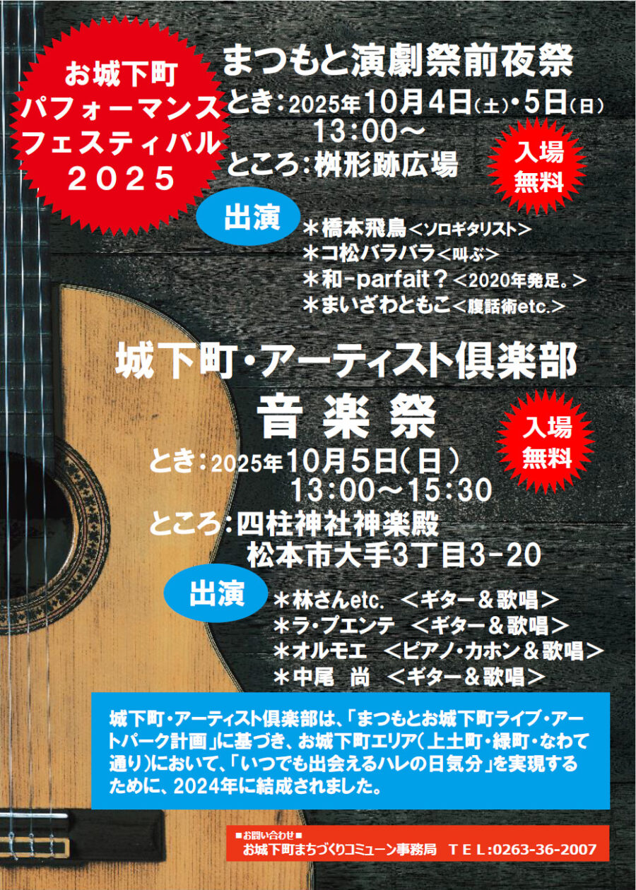 10月4日(金)・5日(土) 13:00- @松本城大手門前形路広場